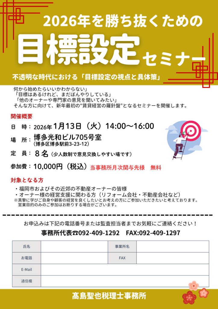 【不動産オーナー・支援業者向け 「目標設定セミナー」】のご案内